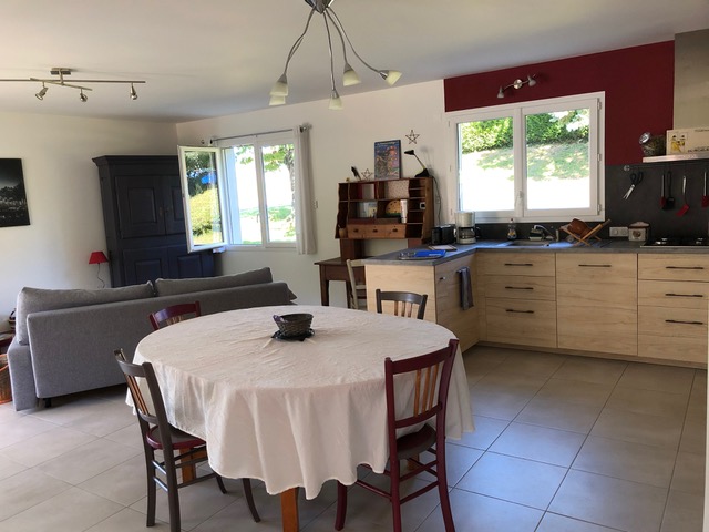 Une pièce à vivre de 40M2 avec sa cuisine totalement équipée et tout le nécessaire pour cuisiner,