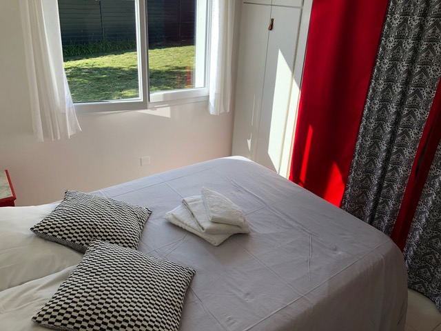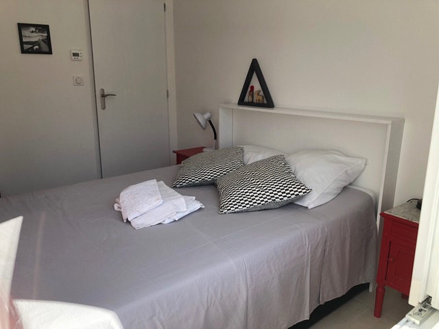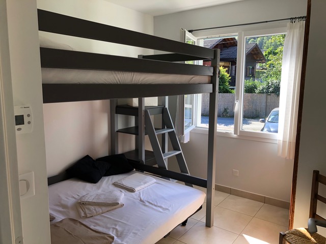 1 chambre avec deux lits doubles dont 1 en mezzanine ainsi qu'une armoire.